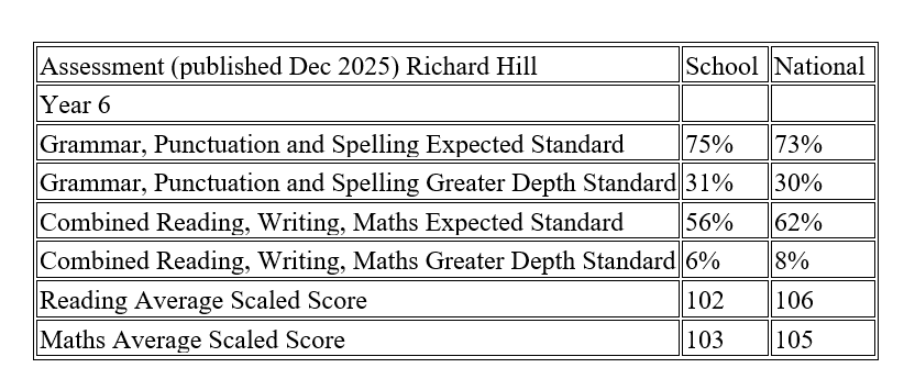For further information on the above data please visit Richard Hill Church of England Primary School - Compare school and college performance data in England - GOV.UK